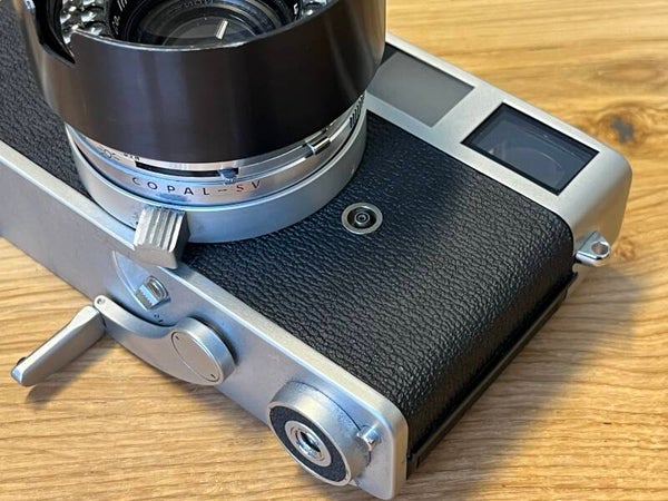 Första versionen från 1961. Mycket fint skick. Fungerar som den ska och har precis filmtestats. Snabb optik som också har en skön karaktär. Kameran fungerar som en helt manuell kamera eller med bländarautomatik. Matas fram undertill med en arm, även retuveven finns undertill. Därför har den en extremt minimalistisk toppkåpa och överdel, ett avtryck! I A-läget spärras över- och underexponeringar. Komplett kit med låda, case, motljusskydd, linsskydd, div instruktioner och kvitto. För en samlare kanske?