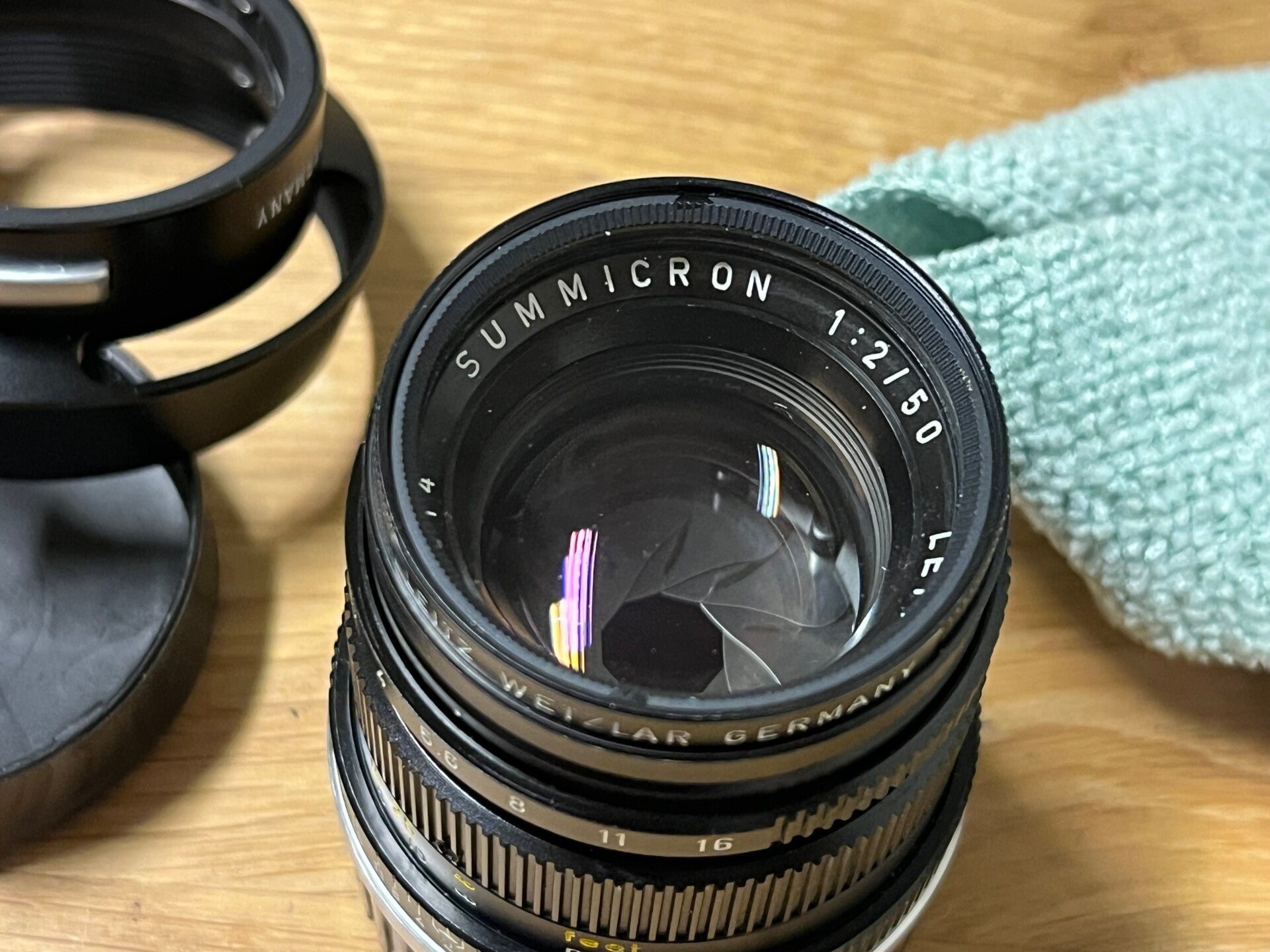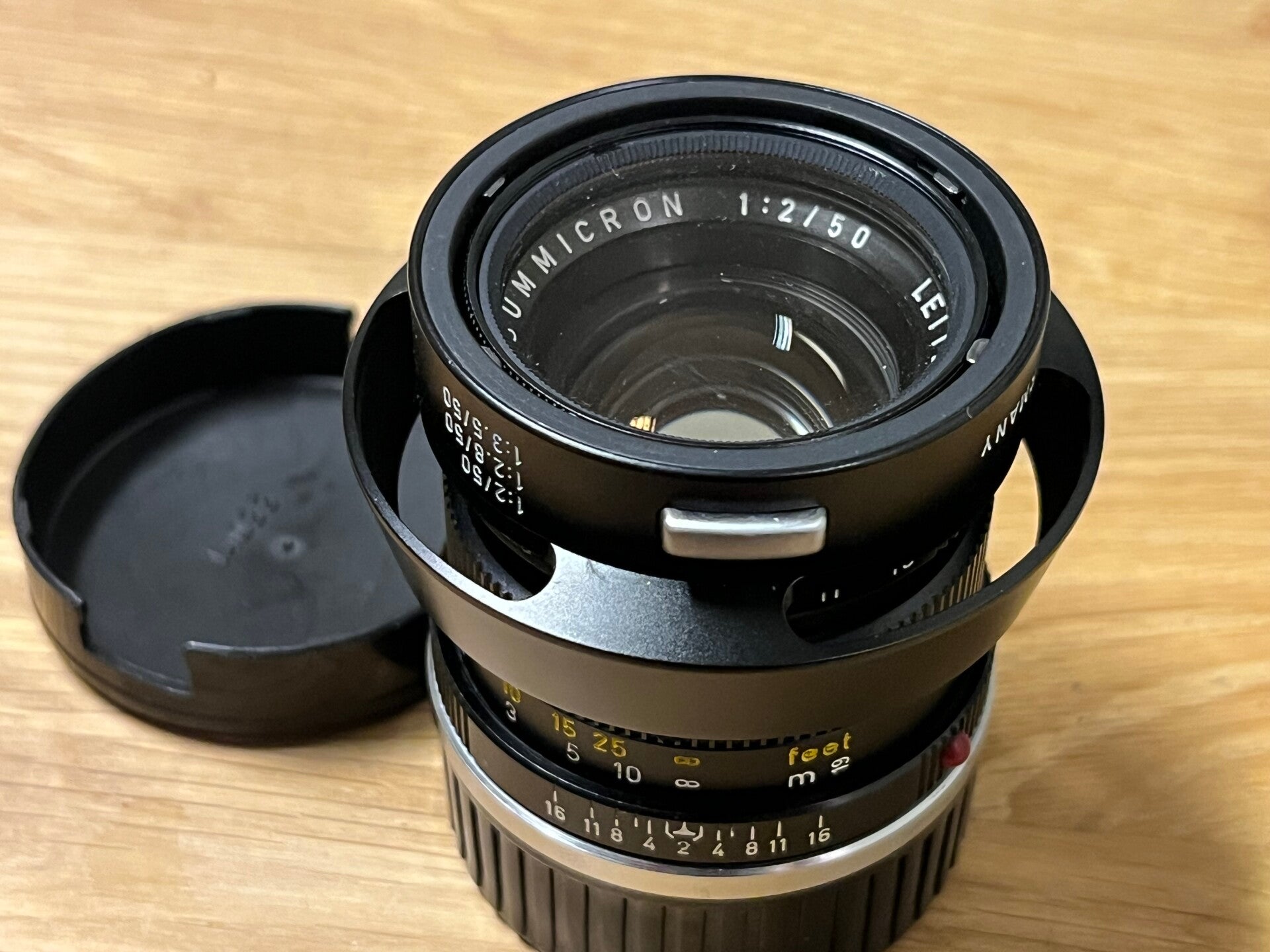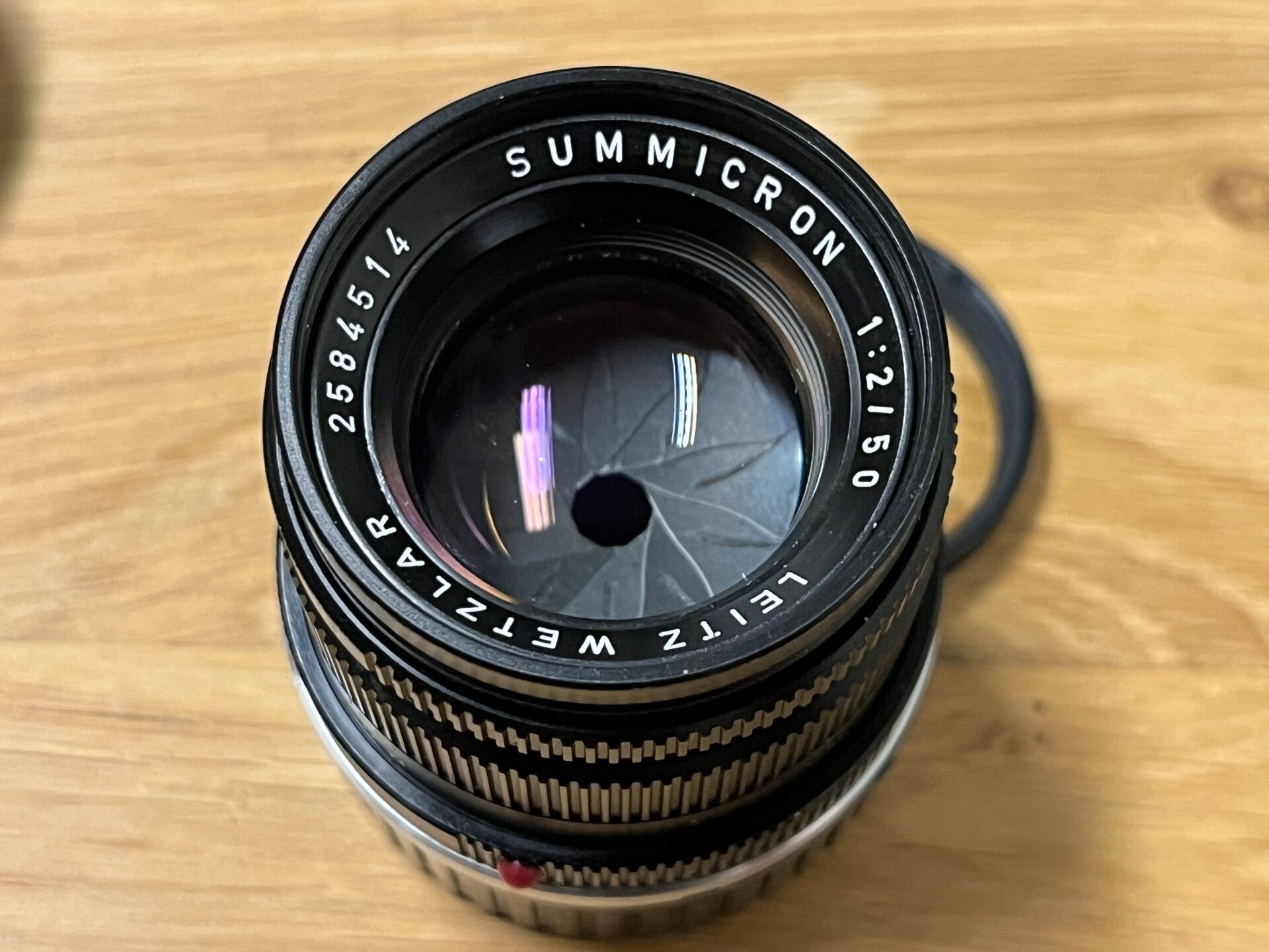 Referens-optik till Leicas M-kameror. Detta är den tredje versionen som kom på slutet av 1960-talet. Har klickstopp på halva bländarsteg, alltså man kan välja ett läge mellan två fulla stopp. Fina glas, och finfin exteriör. Bländarbladen har en aning olja men inget som påverkar något. Man ser det som smala streck på bladen. Jämn och bra fokusering. Med motljusskydd, UV-filter, skyddslock fram och bak.